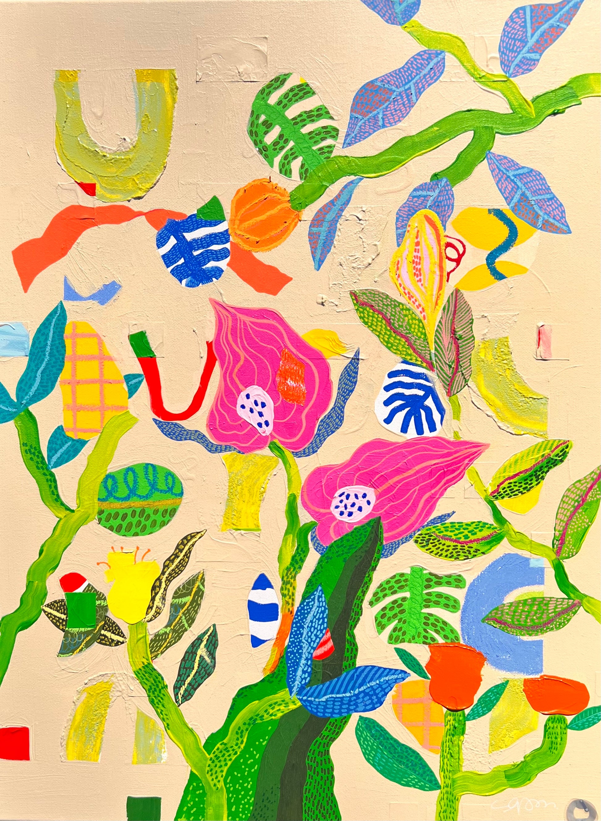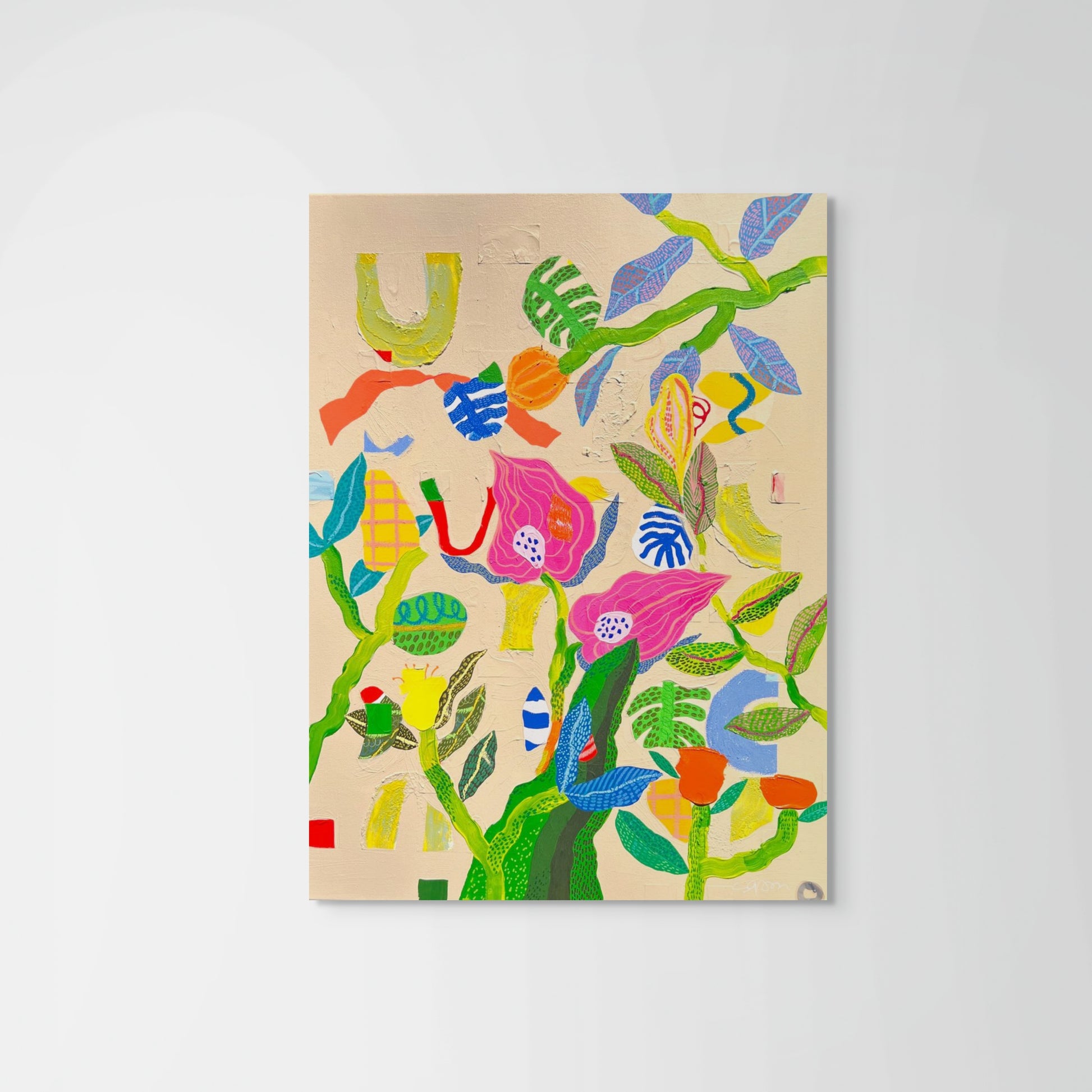 Make your walls bloom with “Mixed Greens,” an original 18x24" mixed media painting on canvas that bursts with botanical rhythm, color, and joy.