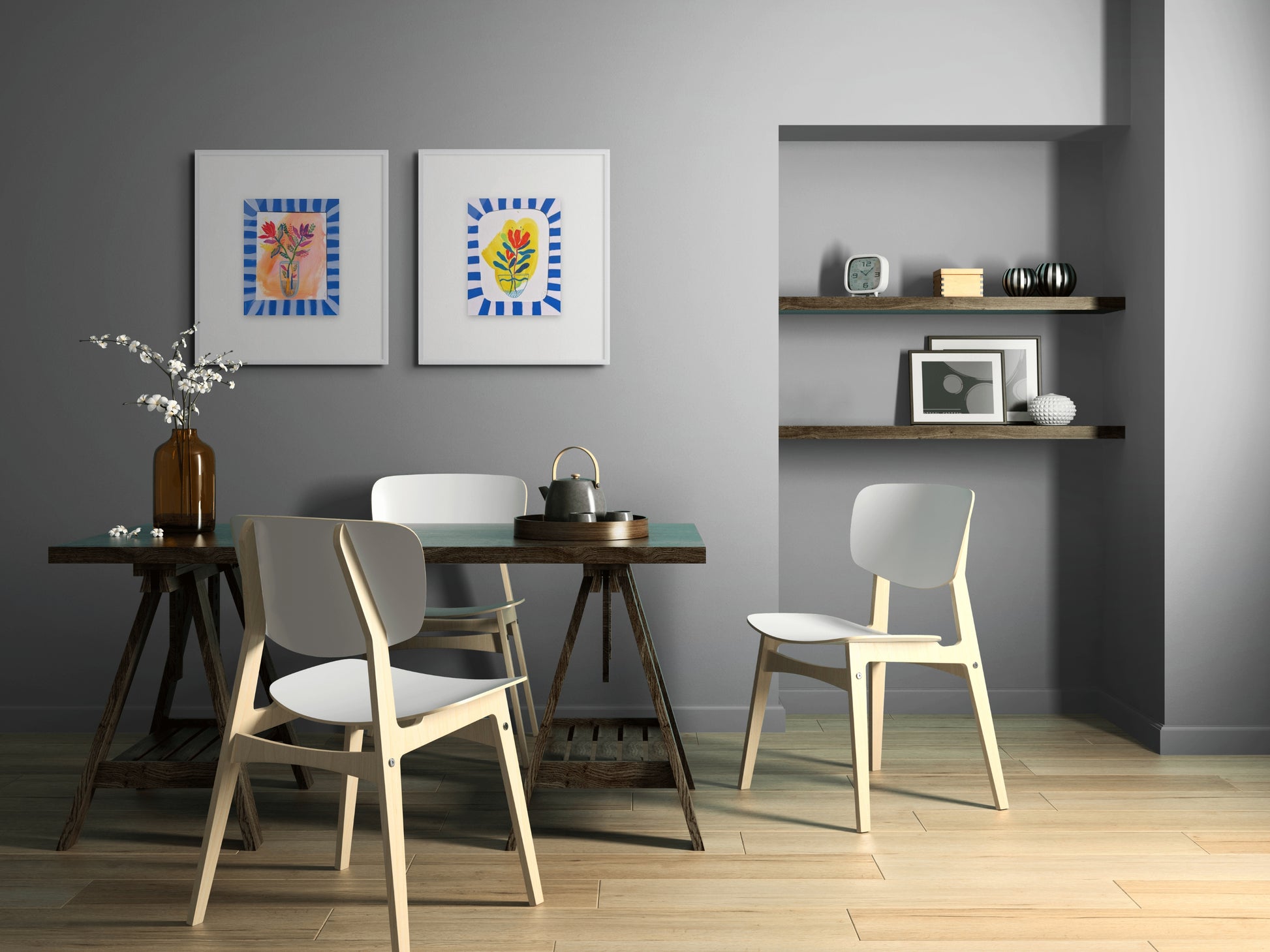 The duo works beautifully as a pair for a gallery wall, or as standalone pieces to brighten different corners of your home. Their bold blue frames make them especially eye-catching in modern interiors, beach-inspired spaces, or colorful dopamine-decor settings.